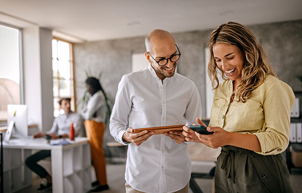 Dabei helfen uns kurze, schnelle Entscheidungswege und unsere enge Zusammenarbeit mit Fachabteilungen wie z. B. Insurance, Vertrieb, Investment, HR oder dem CSR-Team – so können wir unseren Partnern mit passgenauen Lösungen den Berufsalltag erleichtern. Dabei schätzen wir jeden konstruktiven Input, der uns weiter voranbringt.