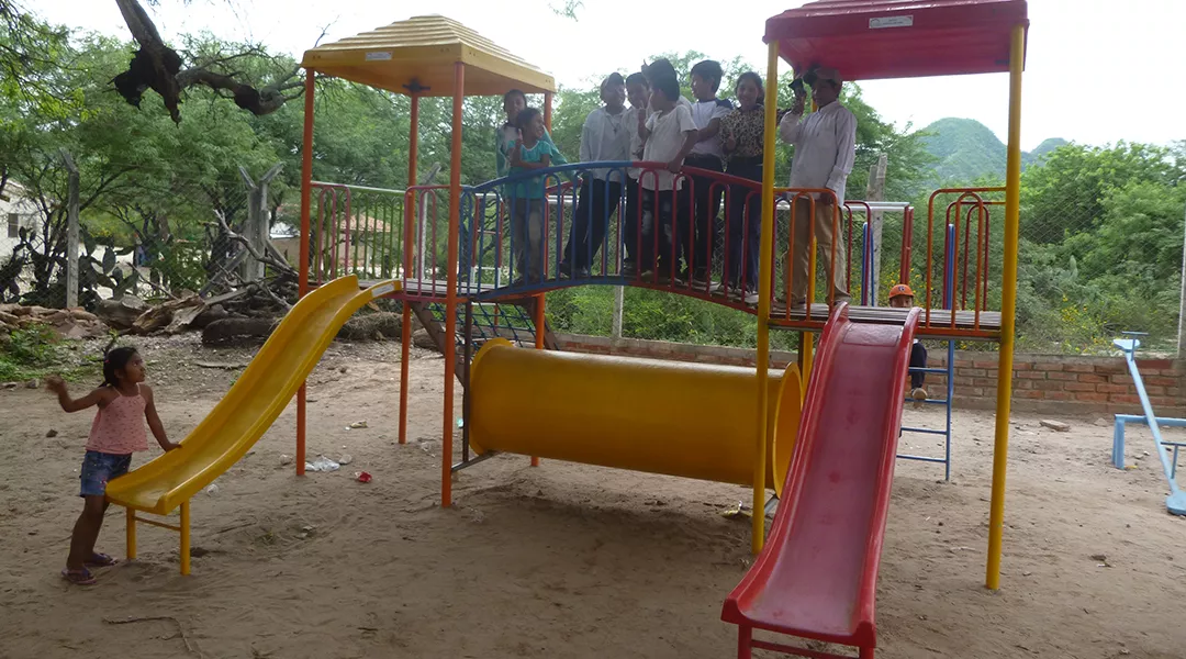 Der Bau ist beendet und die Räume können für den täglichen Schulbesuch genutzt werden. Auch die Sanitäranlagen, die die Gemeindebewohner selbst gebaut haben, sind fertig und benutzbar. Ein zusätzliches behindertengerechtes Toilettenhäuschen für Mädchen und Jungen ermöglicht den Schulbesuch für wirklich alle Kinder, sodass niemand aus der Schulgemeinschaft ausgeschlossen wird. Besonders freuen sich die Kinder auch über ihren neuen Spielplatz.