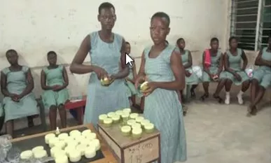 Das Projektteam führt eine Schulung zur Herstellung von Sheabutter-Seifen für Frauen im Sekundarschulbereich und außerhalb der Schule durch. Die Teilnehmerinnen wurden dabei in drei Gruppen eingeteilt: